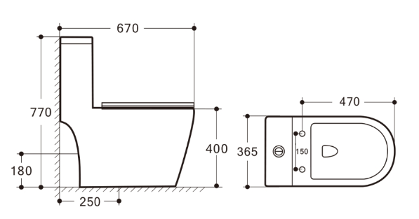 Outlet : P-Trap : 180mm / S-Trap : 250mm